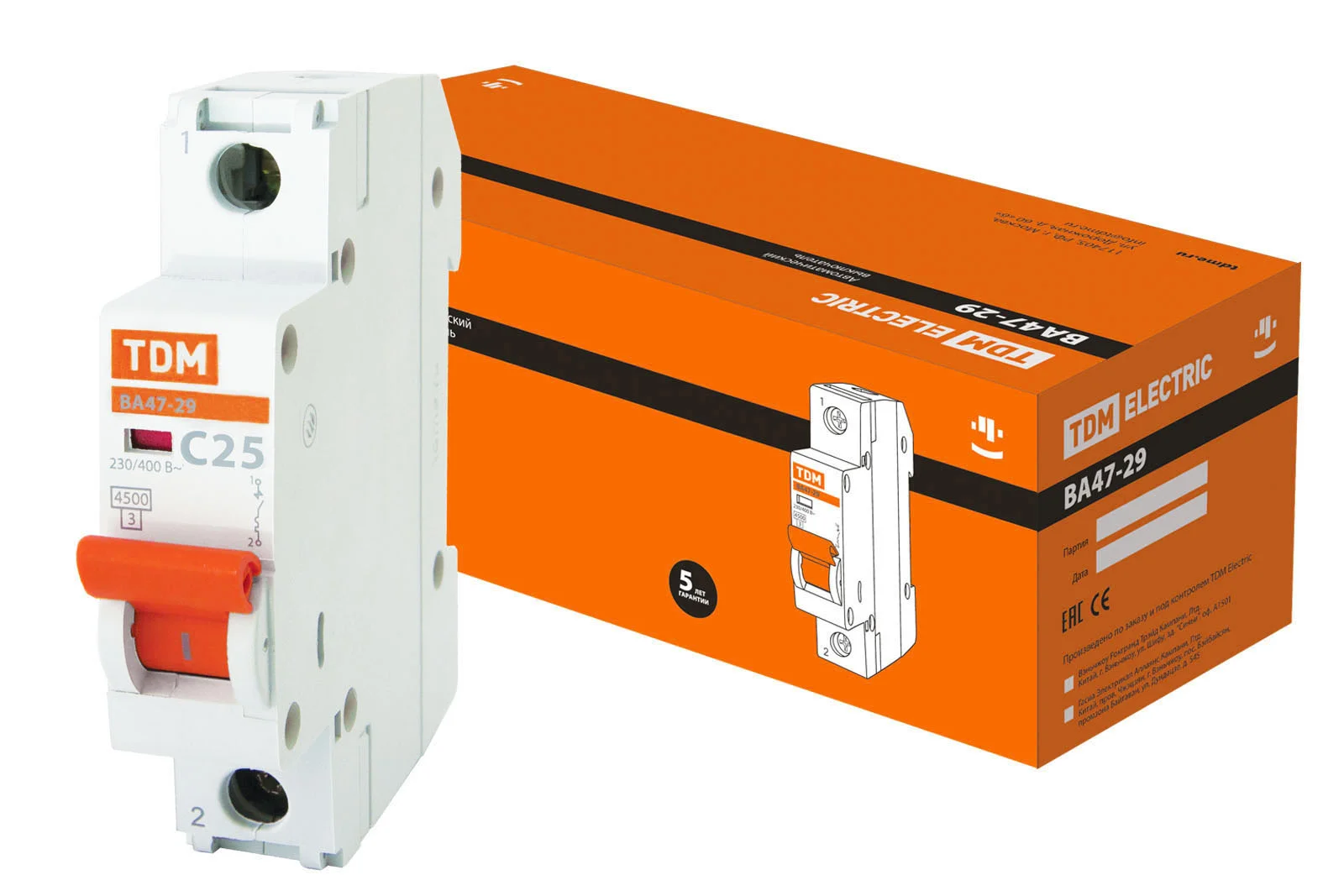 Товар Авт. выкл.ВА47-29 1Р 25А 4,5кА х-ка С TDM доступен с доставкой по г. Москва, Московской области и территории РФ, или самовывозом.