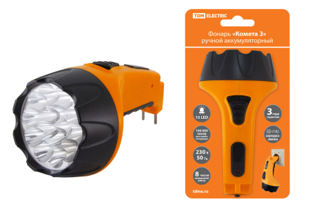 Товар Фонарь «Комета 3» ручной аккумуляторный, 15 светодиодов, 1,1Ач 230В вилка, TDM доступен с доставкой по г. Москва, Московской области и территории РФ, или самовывозом.