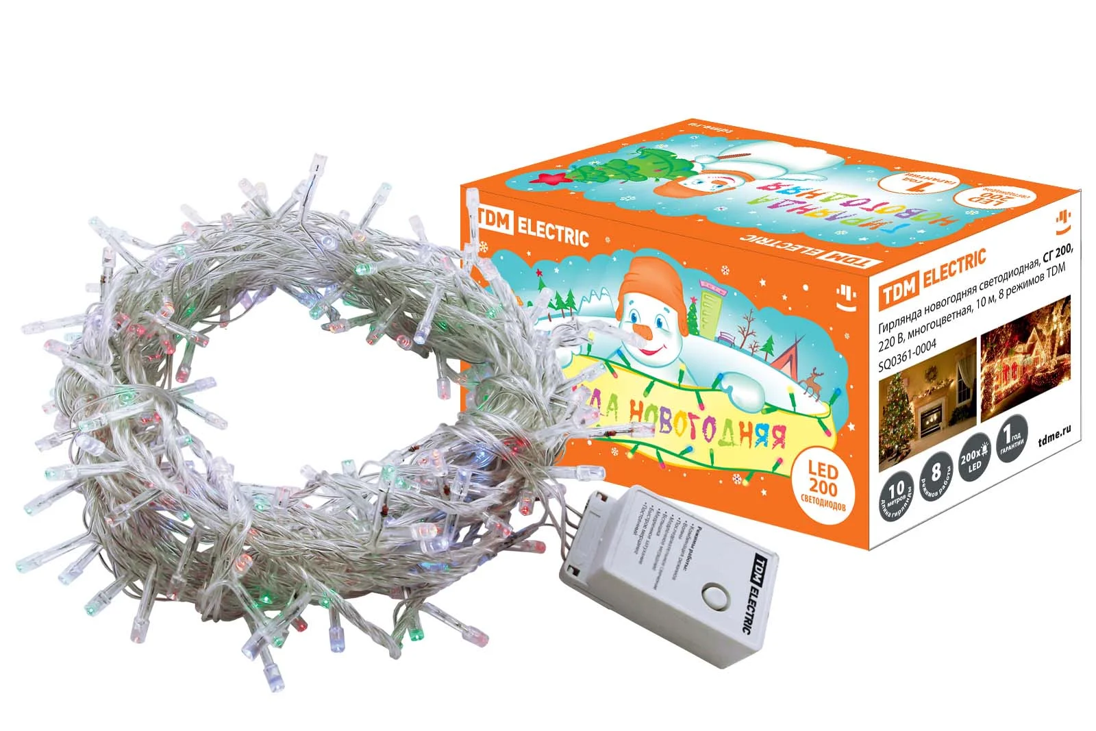 Товар Гирлянда новогодняя светодиодная, СГ 200, 220 В, многоцветная, 10 м, 8 режимов TDM доступен с доставкой по г. Москва, Московской области и территории РФ, или самовывозом.