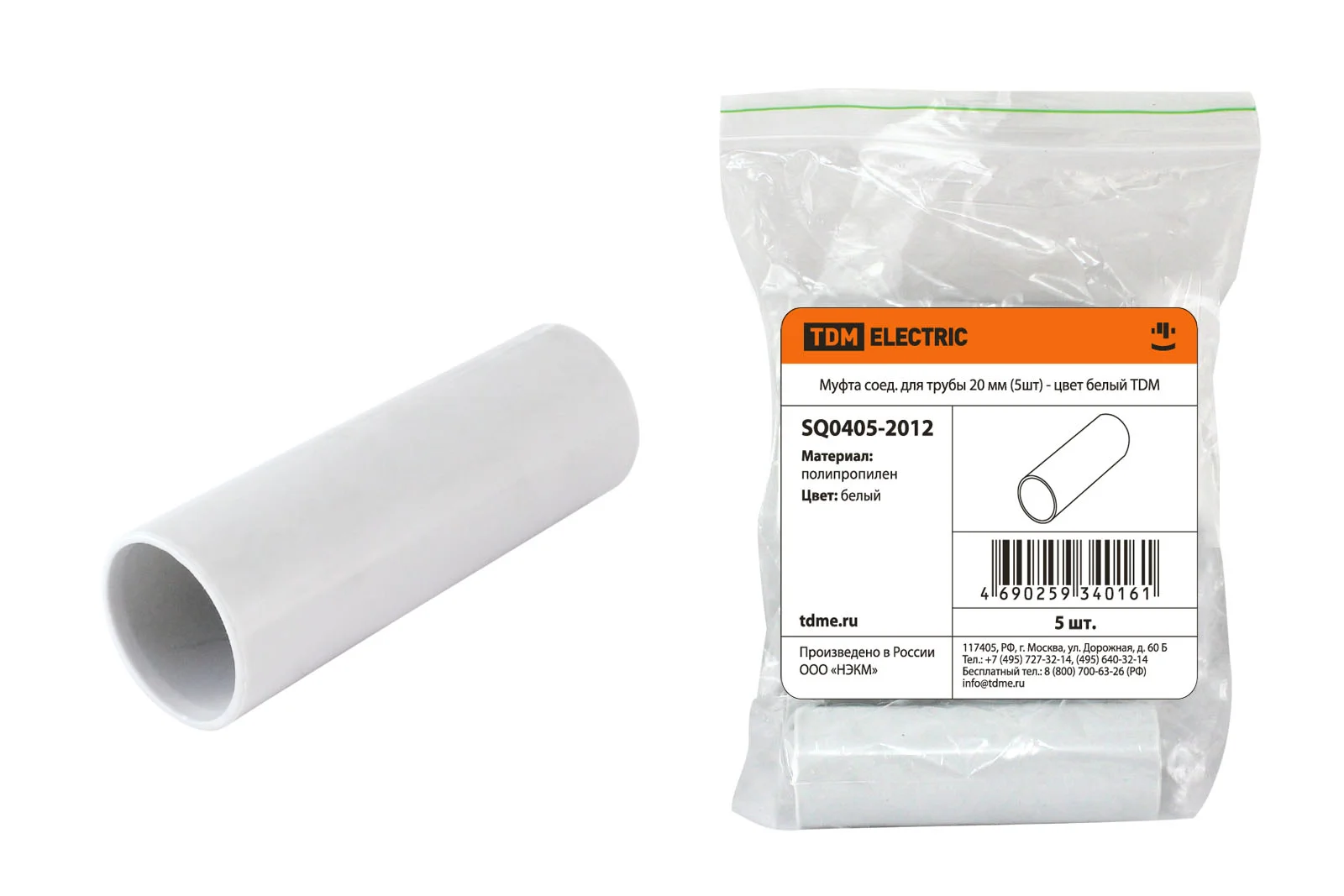 Товар Муфта соед. для трубы 20 мм (5шт) - цвет белый TDM доступен с доставкой по г. Москва, Московской области и территории РФ, или самовывозом.