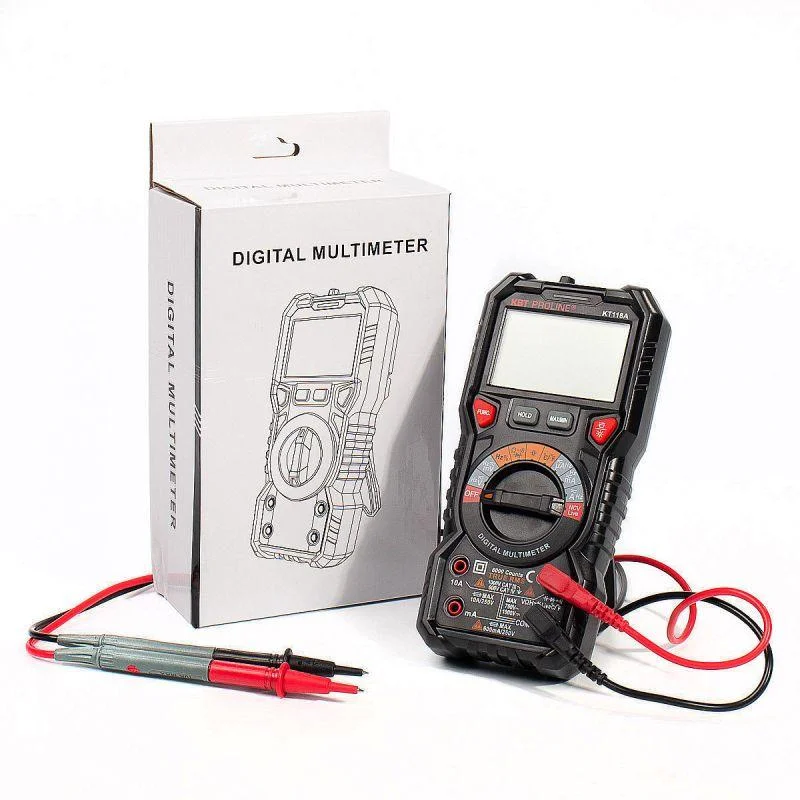 • В комплекте: мультиметр, измерительные щупы, термопара, батарейки, инструкция