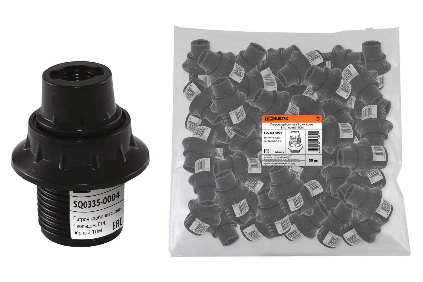 Товар Патрон карболитовый с кольцом, Е14, черный, TDM доступен с доставкой по г. Москва, Московской области и территории РФ, или самовывозом.