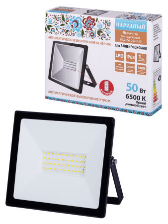 Товар Прожектор светодиодный СДО-04-050Н-Ф (с фотореле) 50 Вт, 6500 К, IP65, черный, Народный доступен с доставкой по г. Москва, Московской области и территории РФ, или самовывозом.