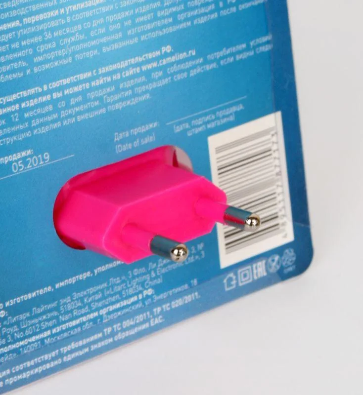 Camelion NL-170 "Фонарик", питание от сети 220В, размер 110х75х70мм, источник света - встроенные светодиоды, мощность 0,5Вт, кол-во светодиодов - 5, пластик.